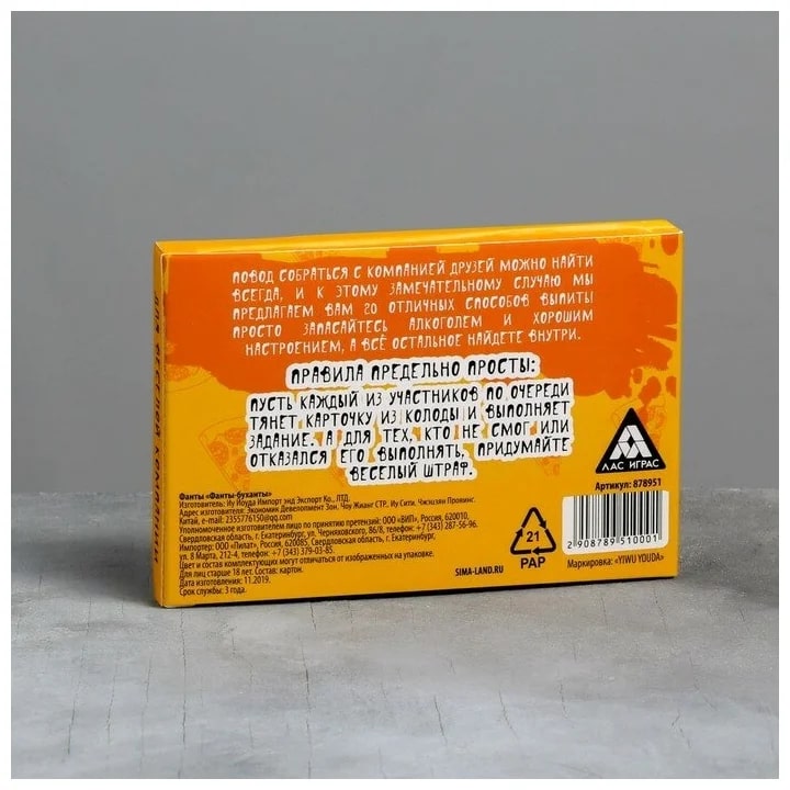 Купить игра для компании "фанты буханты" 20 карт от 100 руб. с доставкой до пункта выдачи в Чапаевске. Интернет магазин ДекаМаркет. Оплата при получении.